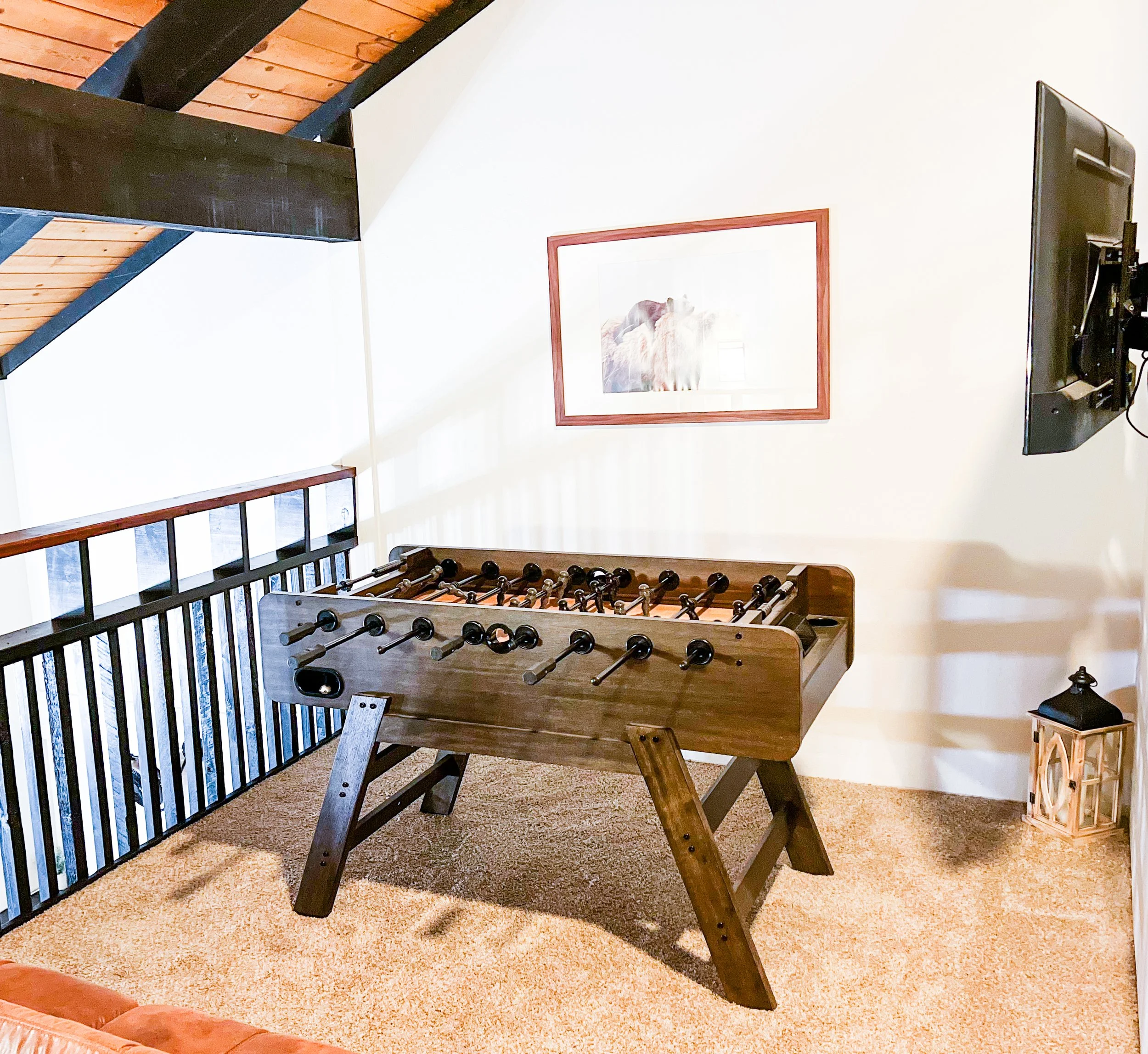A foosball table is a great addition to the house. It provides entertainment and fun for all our guest. It offers hours of enjoyment. It is the perfect way to create lasting memories.
